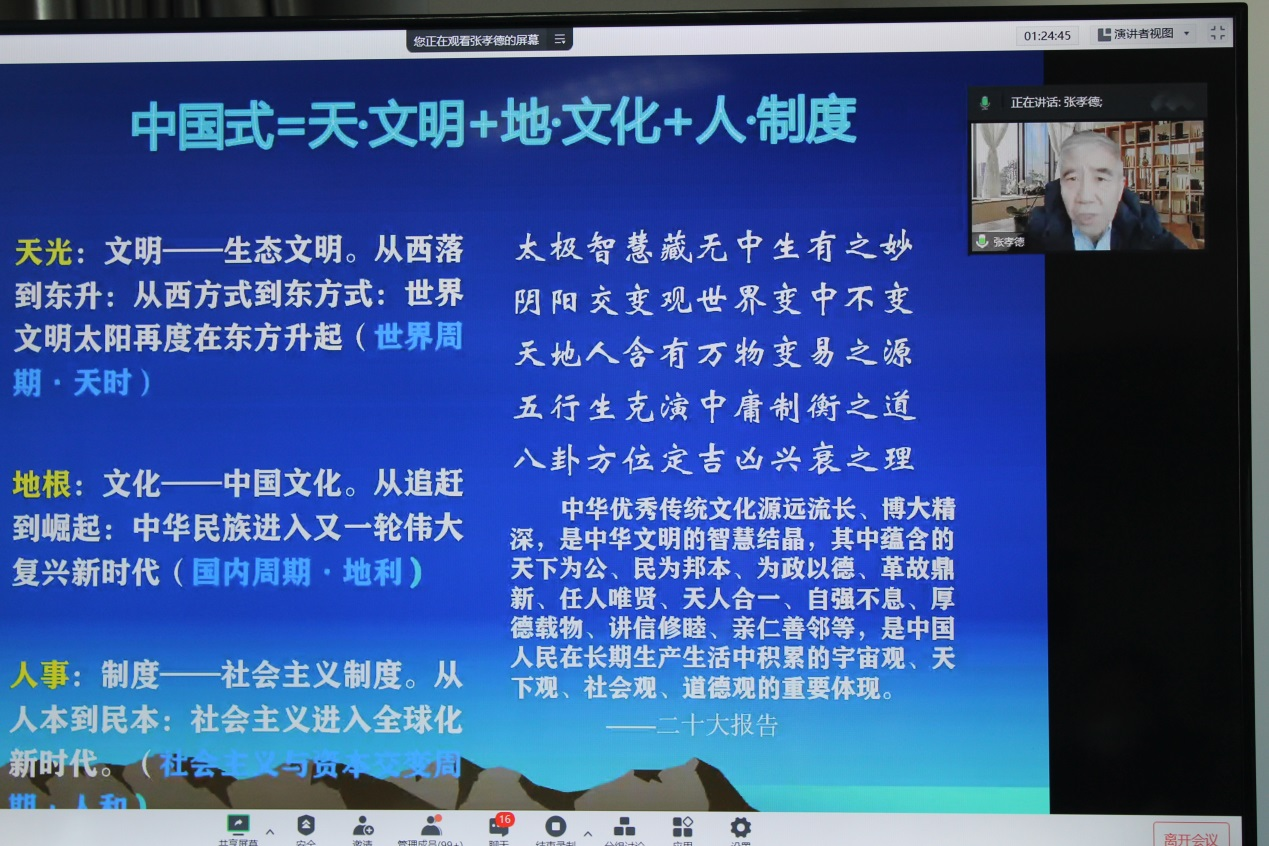 本次会议线下参会20余人,线上受邀嘉宾和注册参会人员300余人,鉴于目前严峻的疫情情势,为了确保参会人员的安全与健康,因而采取了线上线下会议的形式。此次会议报告成果充分体现了:(1)对党的二十大精神和习近平生态文明思想的深刻理解;(2)对中华传统文化智慧的理性认识;(3)对生态文明重要性的认识,对生态与健康的理性思考。